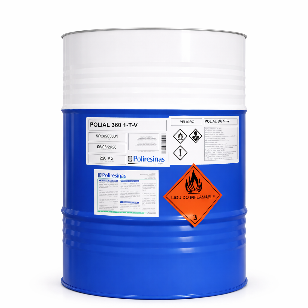 POLIAL 360 1-T es una resina poliéster insaturada de base ortoftálica–tereftálica, formulada con sistema de inhibidores y preaceleración incorporada, que permite un control adecuado de la reactividad durante el proceso de curado.